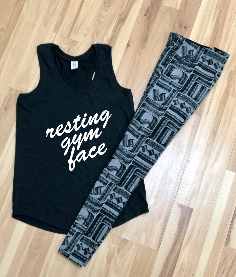 Soft cotton tank top with “Resting Gym Face” on the front.