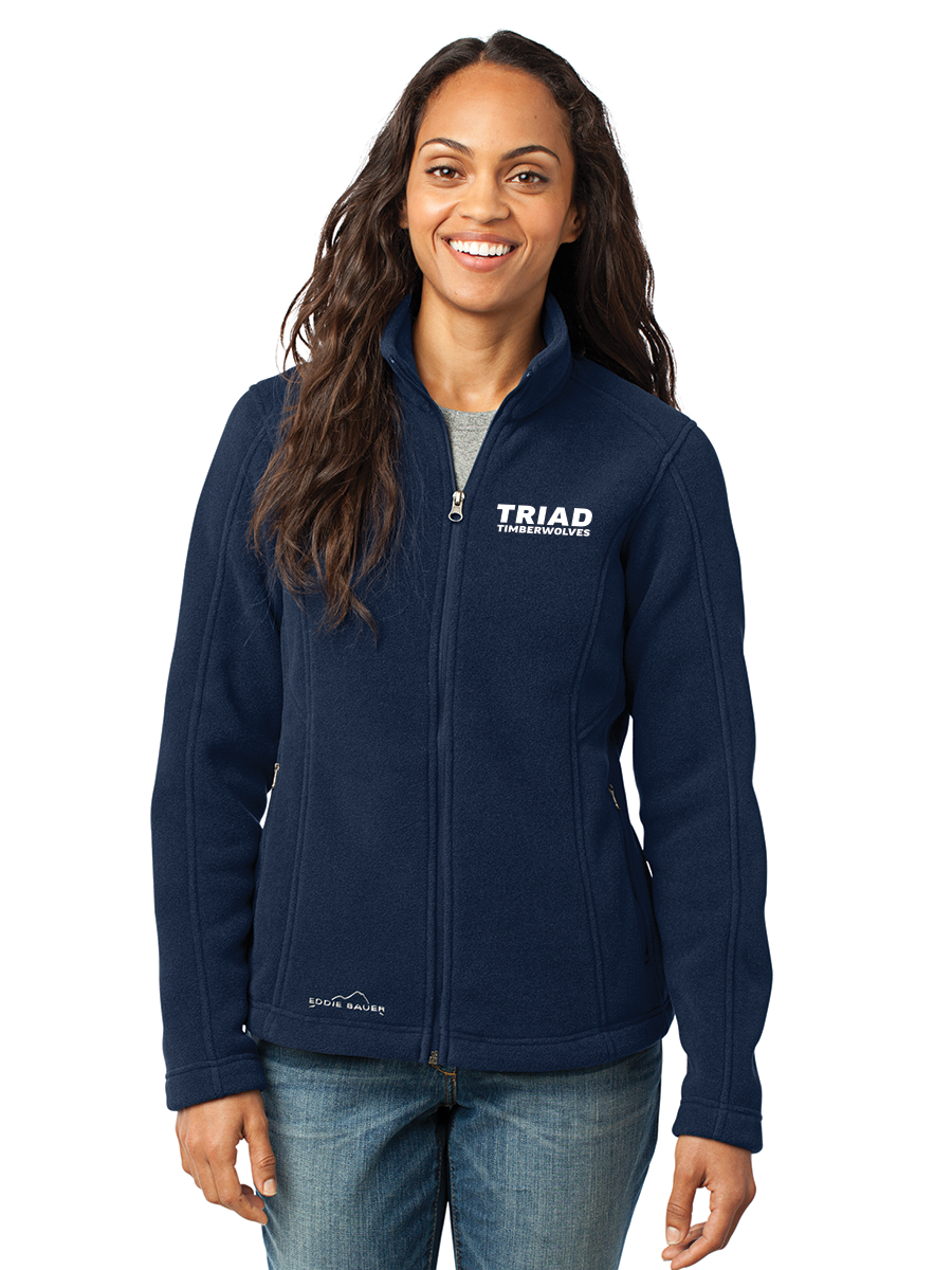 This super soft and warm jacket is as comfortable as it gets for fall hikes and everyday excursions. Contrast roll-top collar, zippered chest pocket, contrast reverse coil zippers, front zippered pockets with tricot lining, open cuffs and an open hem. Embroidered Eddie Bauer contrast logo on right chest, Triad Timberwolves embroidered on left chest.