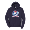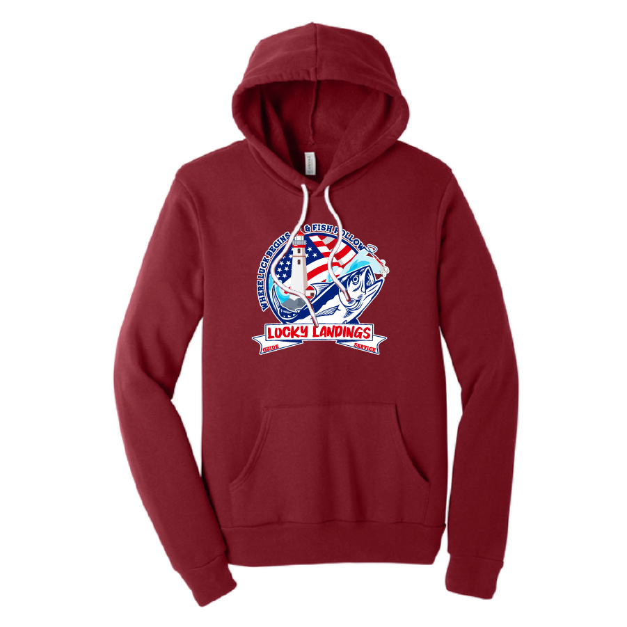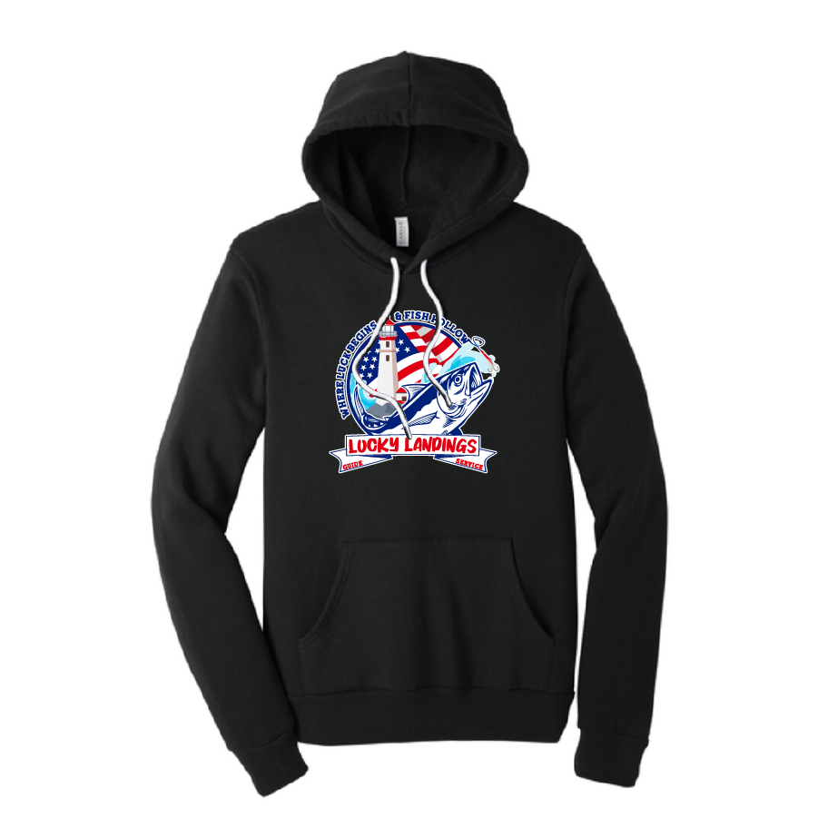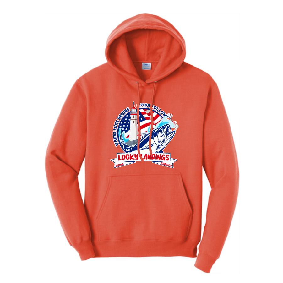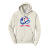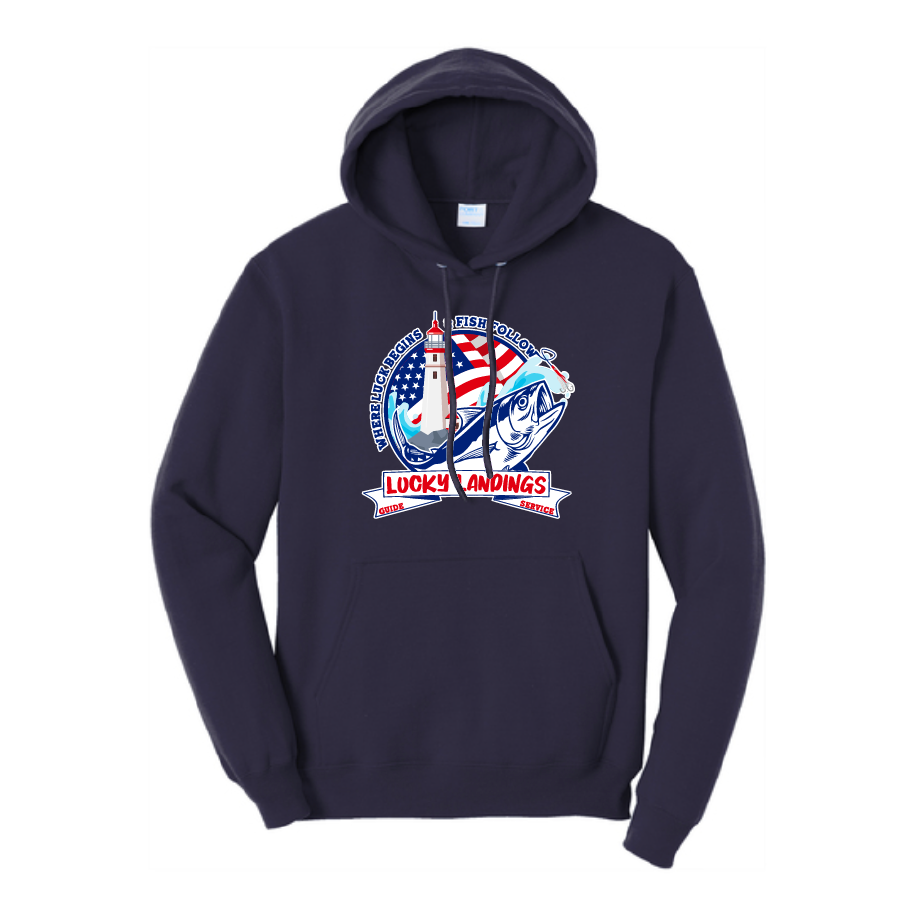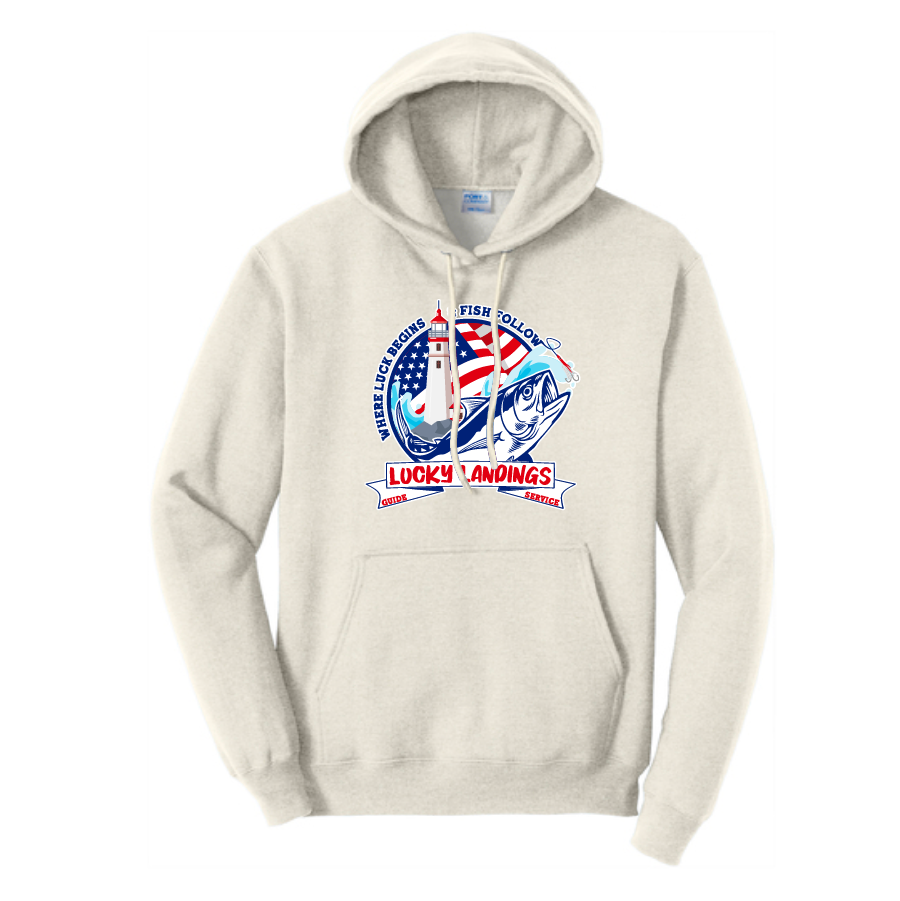 7.8-ounce, 50/50 cotton/poly fleece. Air jet yarn for softness. Two-ply hood.