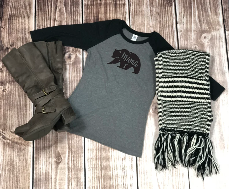 Soft cotton 3/4 sleeve shirt with “Mama” bear design on the front. Available in sizes XS – 4X.