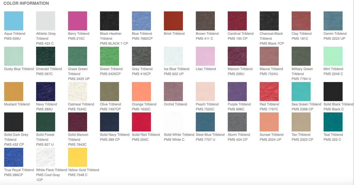 Triblend Colors: 3.8-ounce, 50/25/25 poly/Airlume combed and ring spun cotton/rayon, 40 singles