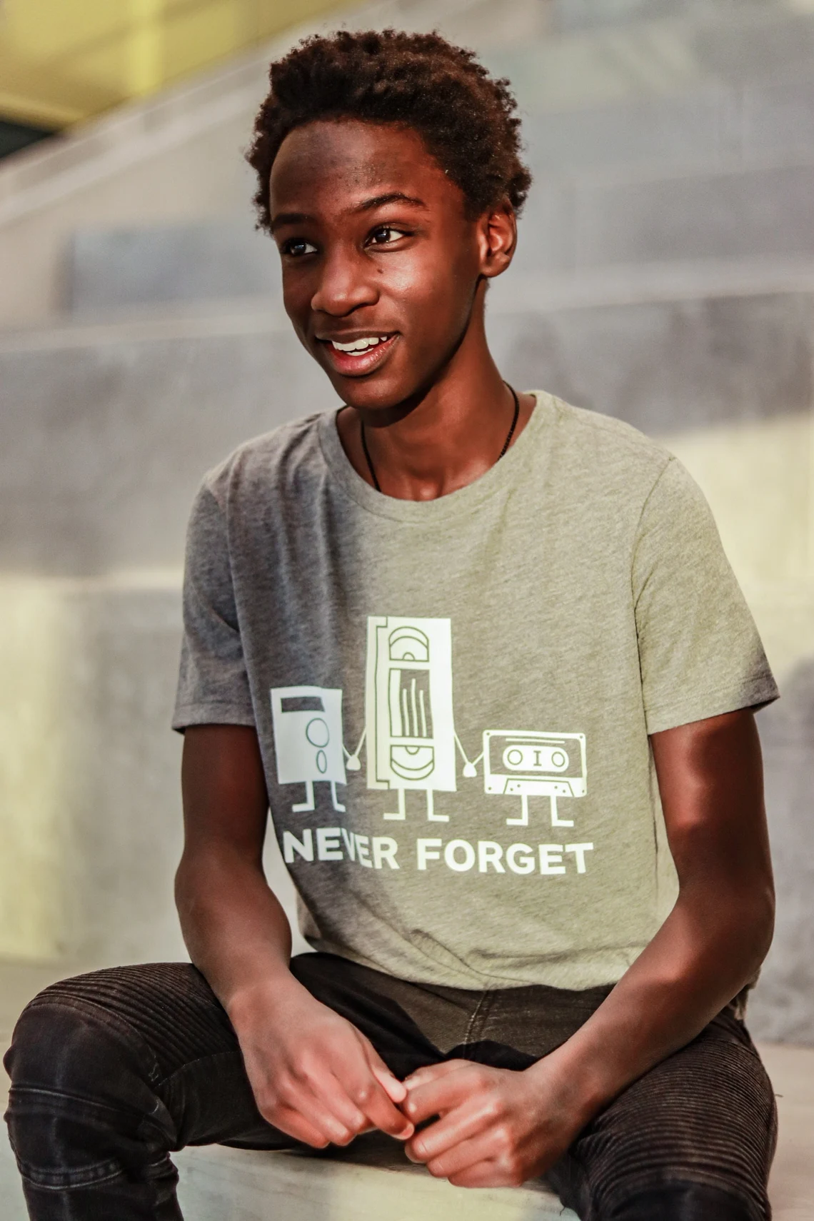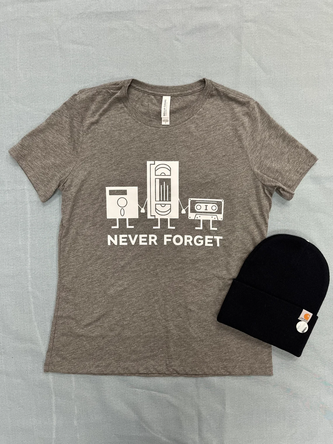 Soft triblend tee shirt with “Never Forget” design on the front.