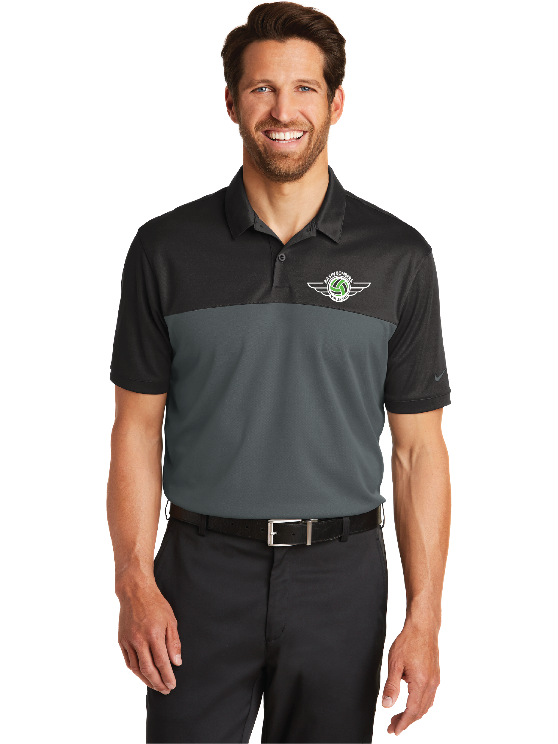 - Dri-FIT moisture management technology keeps you dry and comfortable. Features include a self-fabric collar, two-button placket with dyed-to-match buttons and open hem sleeves. A contrast Swoosh design trademark is embroidered on the left sleeve. Made of 4.1-ounce, 100% polyester Dri-FIT fabric.