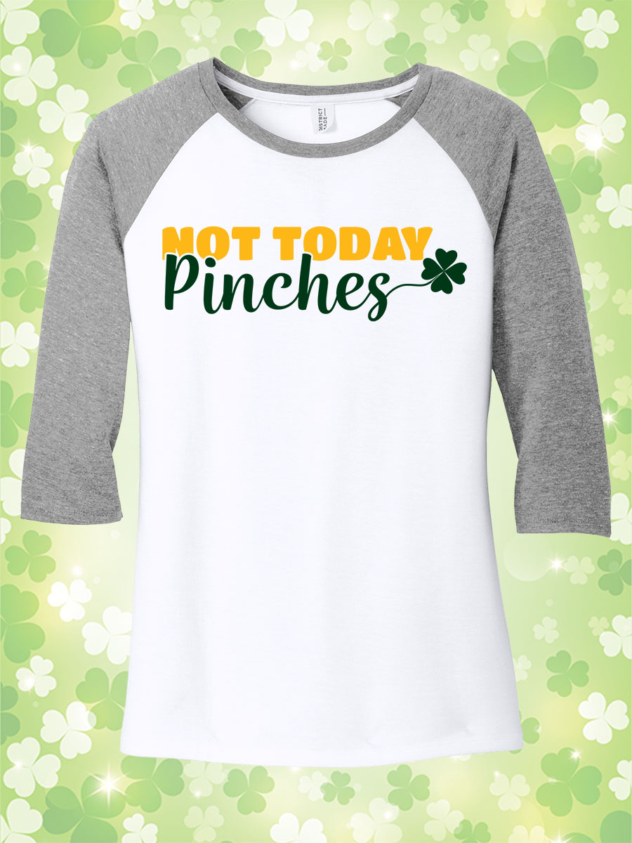 A soft, ladies 3/4 sleeve tee featuring the St. Patrick’s Day design “Not Today Pinches!”