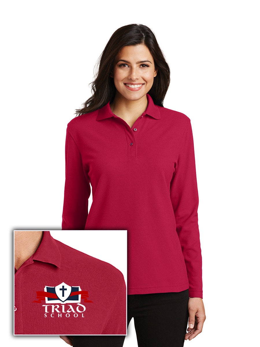 Port Authority® Ladies Silk Touch™ Long Sleeve Polo – Red