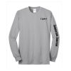 50/50 cotton/poly. Back neck tape. Removable tag for comfort and relabeling.
