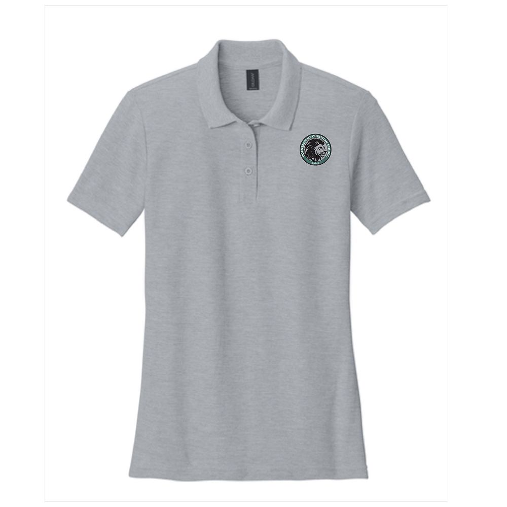 50/50 cotton/poly. Stain-release finish. 1×1 rib knit collar and cuffs. 3-button placket with dyed-to-match buttons. Double-needle hem.