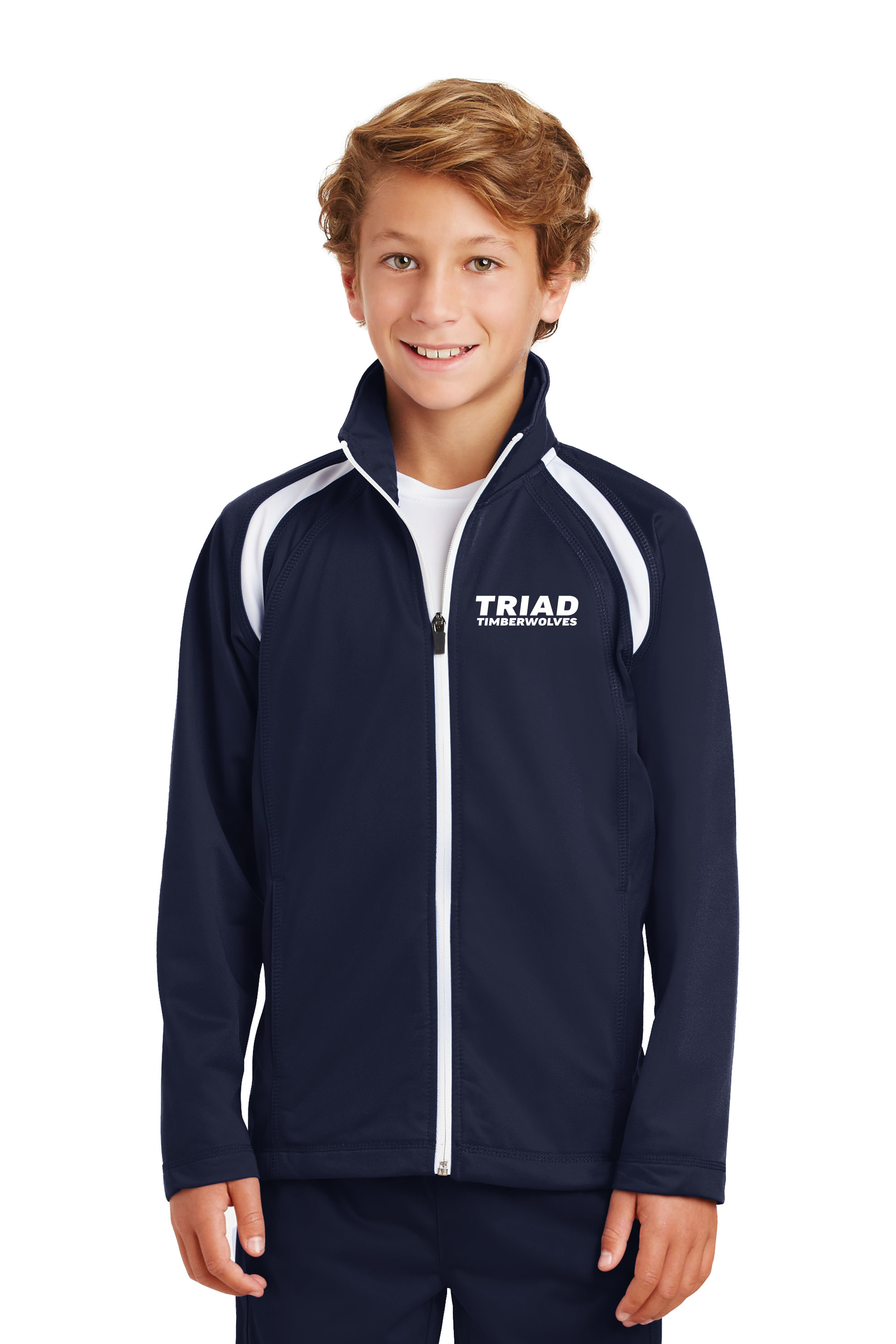 Youth Sport-Tek Tricot Jacket – Navy/White